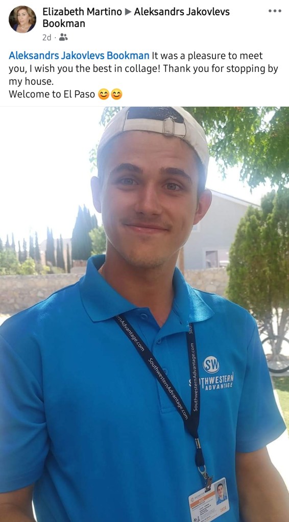 Aleksandrs: Satiku vienu ļoti jauku vecmāmiņu Elizabeti. Es viņai atgādināju viņas mazdēlu 😄Viņa ne tikai nopirka grāmatu no manis, bet arī uztaisīja pozitīvu postu par mani savā facebookā.