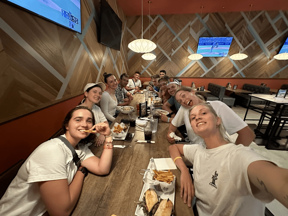 Jau, JAU, es atkartošos, JAU, esam pabeiguši 5 nedeļu. Laiks skrien tik ātri ka neesam vēl paspējuši izskamēt mantas no čemodaniem ka gandrīz puse no vasaras ir pagajusi. Šodien ir svētdiena un tas nozimē ka laiks ir drusku tuvāk iepazīties ar Amerikas kultūru. Šodien tikamies pie vienas programmas absoventiem. Kriss piedalijas programma vairāk neka 30 gadus atpakaļ. Viņš pastastīja par to ko pats ir iemacijies piedaloties gramatu pardošana un ka tas palidzeja dzīves mērķu sasniegšana!