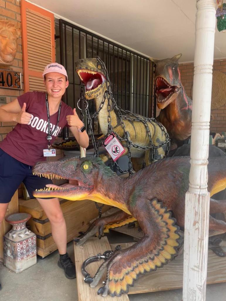 Karlīna: Satiku cilvēku kurš bija paleontologs, kuram bija tik daudz stilīgu dinozauru, viņš man pat iedeva grāmatas par dinozauriem! 🦖