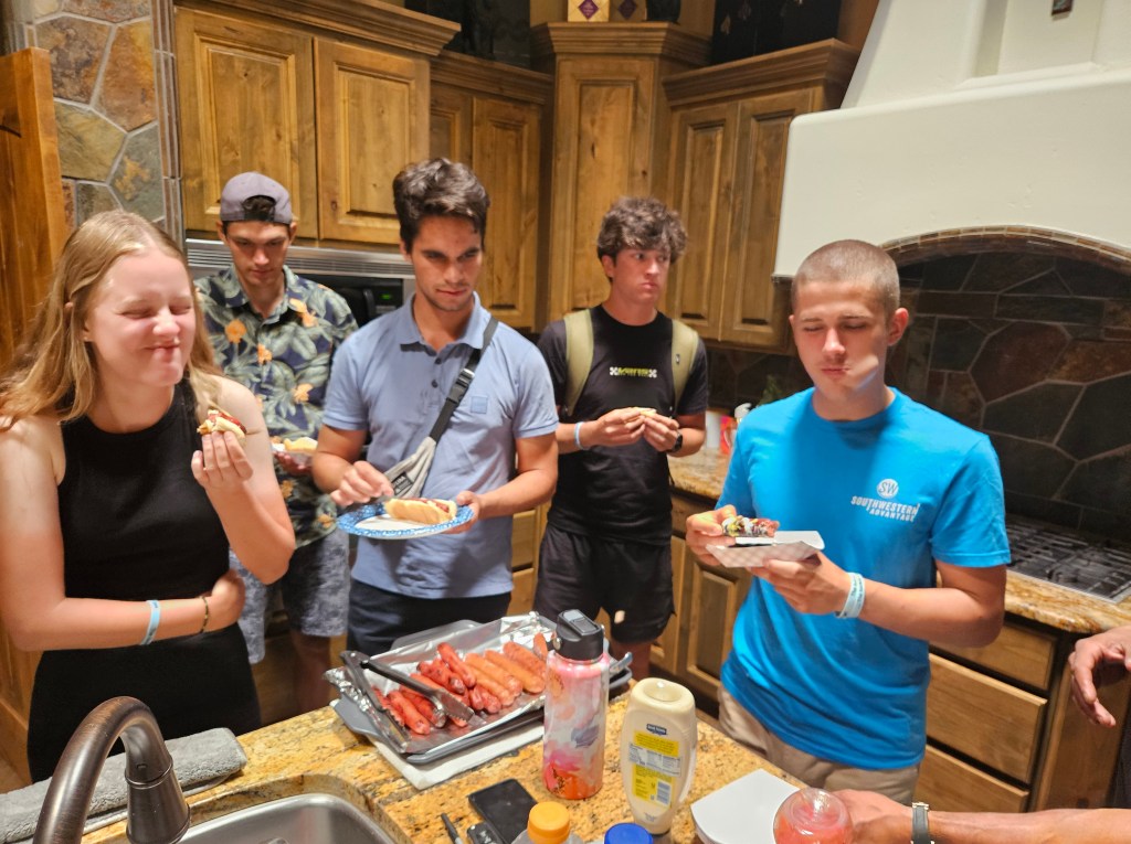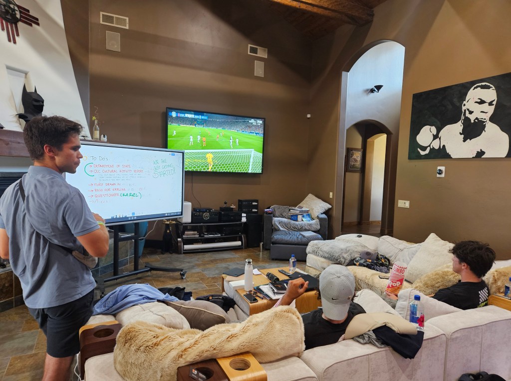 Šo svētdien devāmies pie Joe, kurš ir arī kādreiz pārdevis grāmatas un pašlaik ir devis mājvietu mūsu grupas meitenēm – Karlīnai un Elvīrai. Šeit uztaisījām nelielu BBQ, noskatijāmies Eiropas futbola fināla spēli un pirmo reizi šajā vasarā arī nopeldējāmies baseinā un sajutām kā brīvdienās atpūšas cilvēki Teksasā un New Mexico 🤪