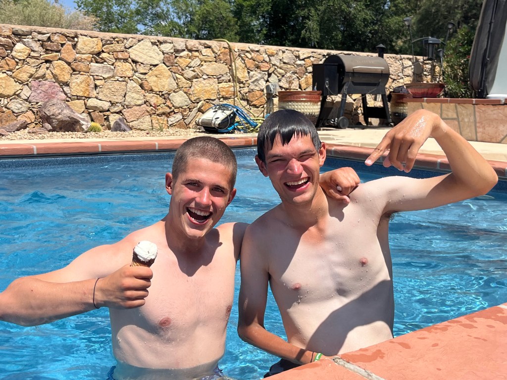 ENG: This Sunday we went to Joe, who has also sold books before and is also a host dad to the girls of our group – Karlīna and Elvīra. There we had a little BBQ, watched the European football final and swam in the pool for the first time this summer and enjoyed how people in Texas and New Mexico relax on vacation.