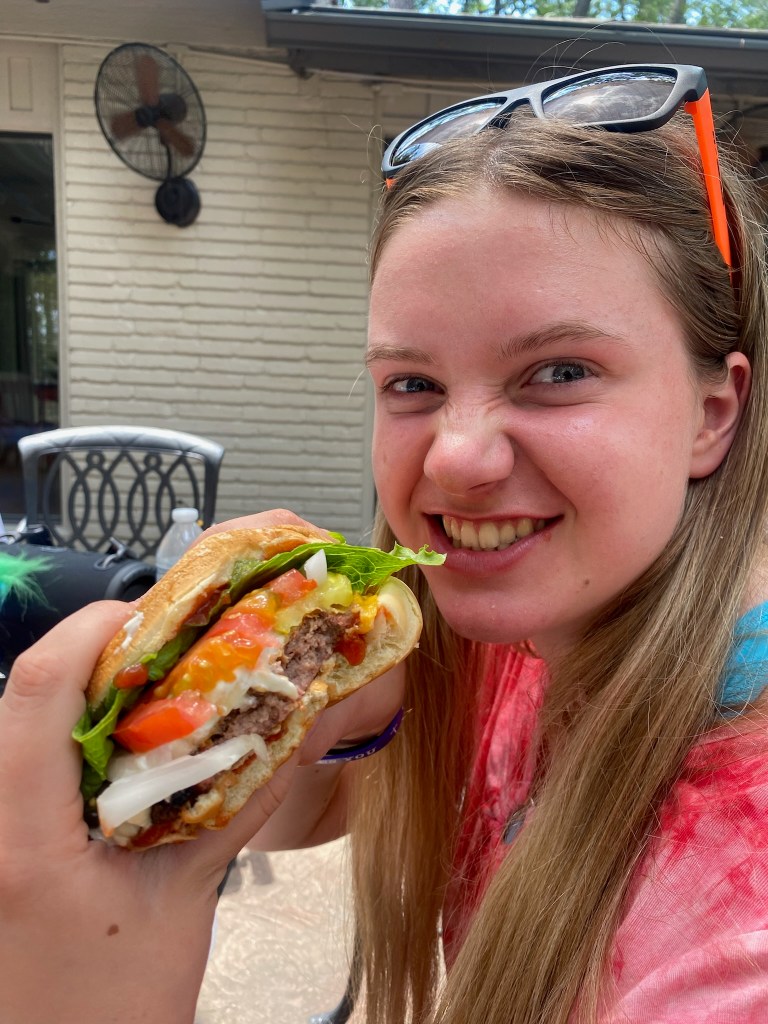 Madaru Luīzi šonedēļ pabaroja ar gobanžo, kas ir tradicionālais Luiziānas ēdiens. Viņai vairs nebija jāēd ierastās sviestmaizēs ar gaļu un sieru.