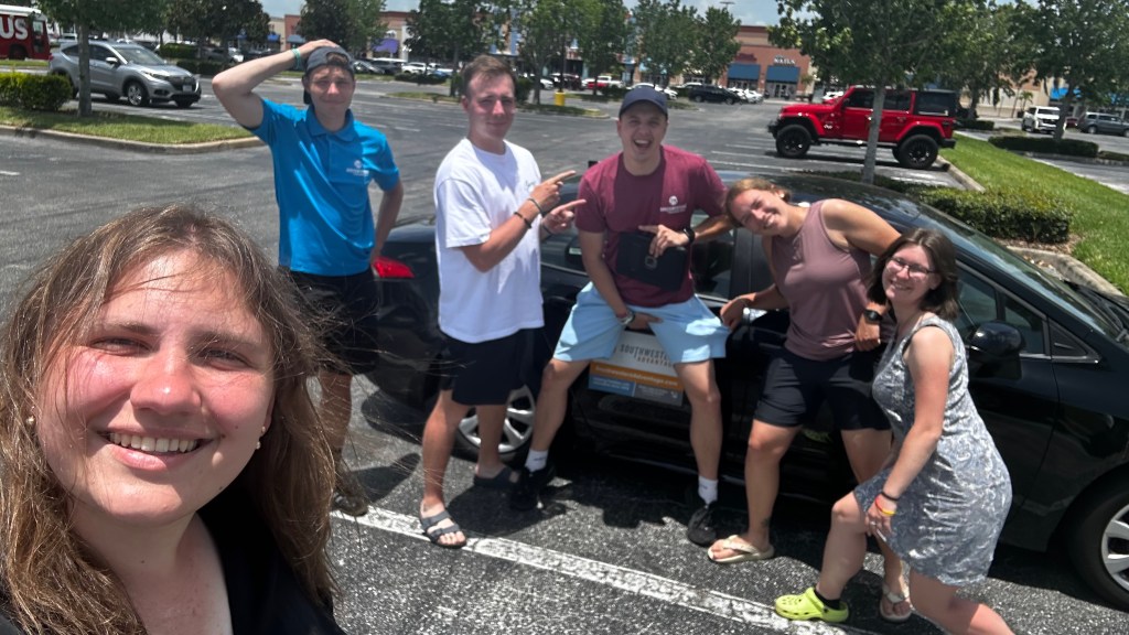 Pēc tam devāmies jau ar mašīnām 12 stundu braucienā no Nashvillas uz Orlando🚗, kur meiteņu mašīnā pievienojās vēl Ieva un Mārica no AMx3 komandas.