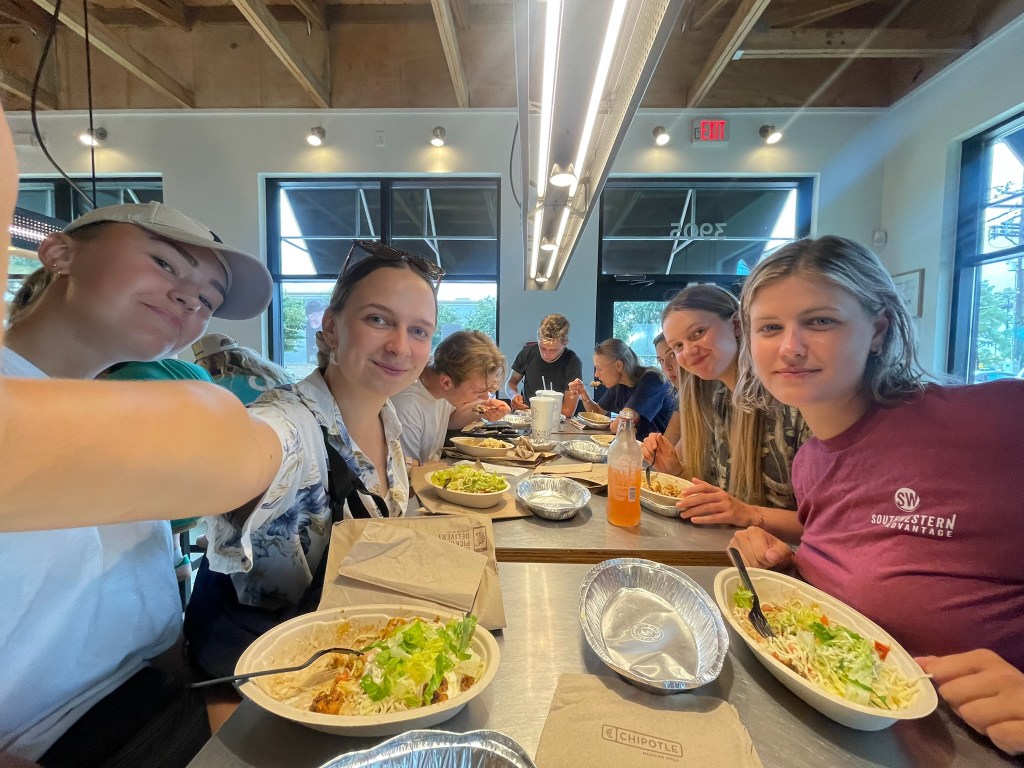 Šī nedēļa no iepriekšējam izcēlās ar to, ka ieguvām pamatīgu kultūras pieredzi. Nedēļas sākumā Teksasā plosījās viesuļvētra “Berila”. Nekas pārāk traks, bet Latvijā tādu nepiedzīvot. Lielais vējš sagāza kokus, lietus izraisīja plūdus, bet mums visiem viss ir vislabākajā kārtībā. Daudzi cilvēki uz pāris dienām palika bez elektrības un gaisa kondicioniera, tāpēc sēdēja mašīnā, lai atvēsinātos, uzlādētu telefonus. Teksasā cilvēkiem patīk aukstums. Bija arī redzami interesanti skati – maza mašīna pilna ar cilvēkiem, kuri izbauda gaisa kondicionieri, vienā mājā kopā sanākušas 4 mājsaimniecības, kas devušās pie radiniekiem elektrības meklējumos, ārā visu dienu un nakti bija dzirdamas zālespļāvēju skaņas, kas patiesībā bija ģeneratori. Dažām teritorijām bija mazāk paveicies, nekā citām: