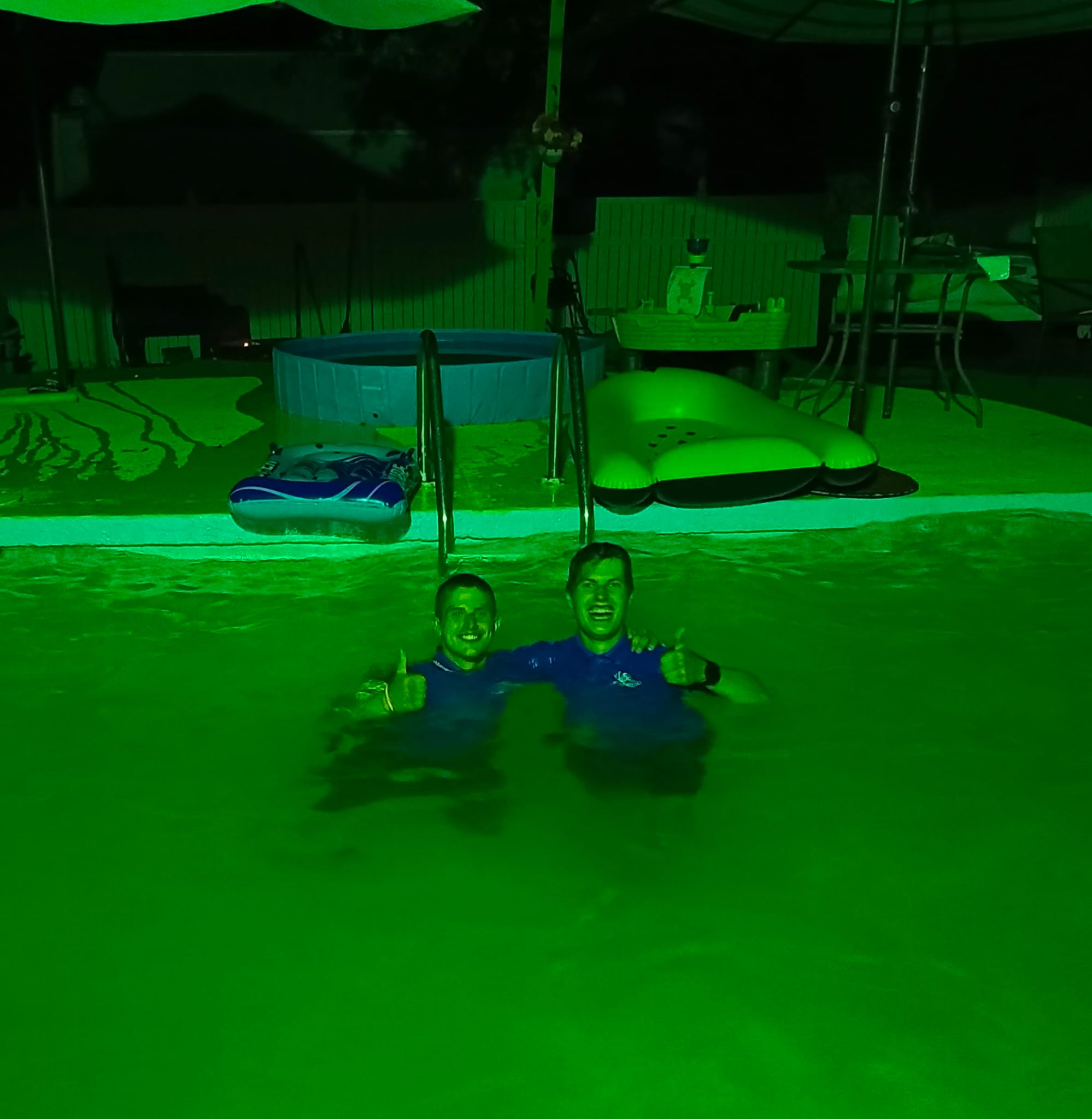 Ar Aleksandru ielēcam baseinā, kārtīgi noslēdzām nedēļu