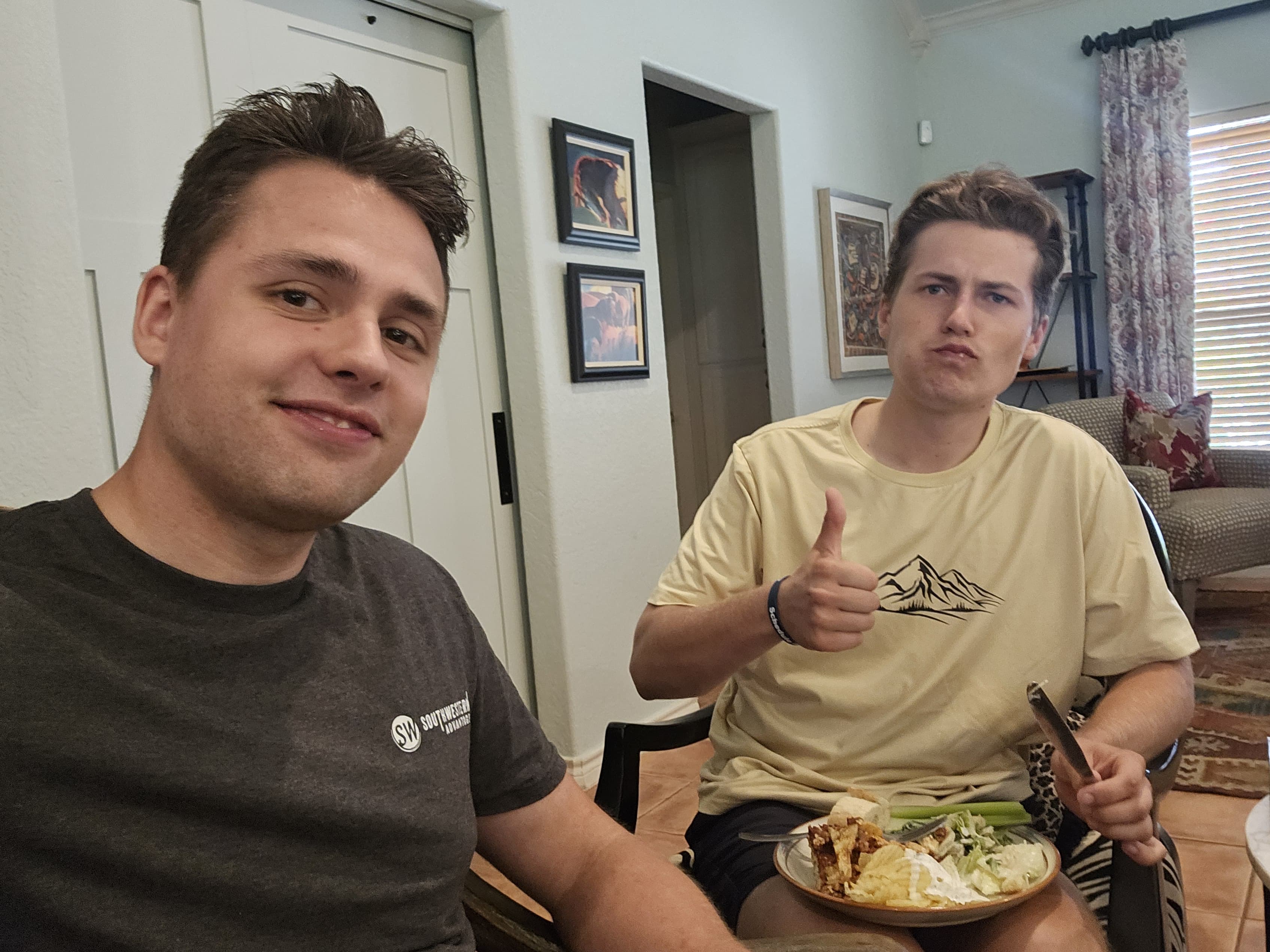 Mums ir vislabākā viesğimene, pēc garas dienas 22:30 pabaro ar īstiem govs mēles taco. Un arī izrādās ka Teksasā aug pekanrieksti pagalmos cilvēkiem, ome iedeva veselu maisu ar riekstiem, labinieks