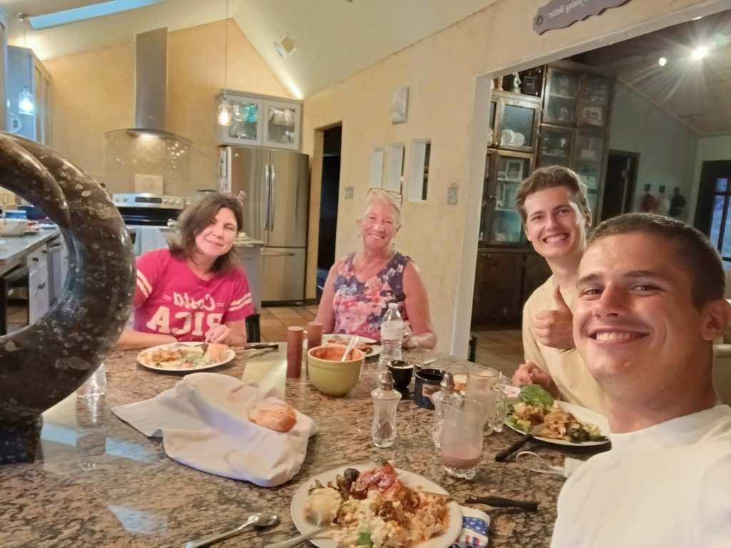 Jau kādu laiku man un Aleksandram ir iespēja dzīvot kopā ar viesu ģimeni. Viņi ir ļoti viesmīlīgi un jau vairākas reizes svētdienas vakaros mums uzklāj galdu un mums ir iespēja vairāk dzirdēt viņu stāstus par to kā viņi šeit dzīvo. Tas ir lieliski!