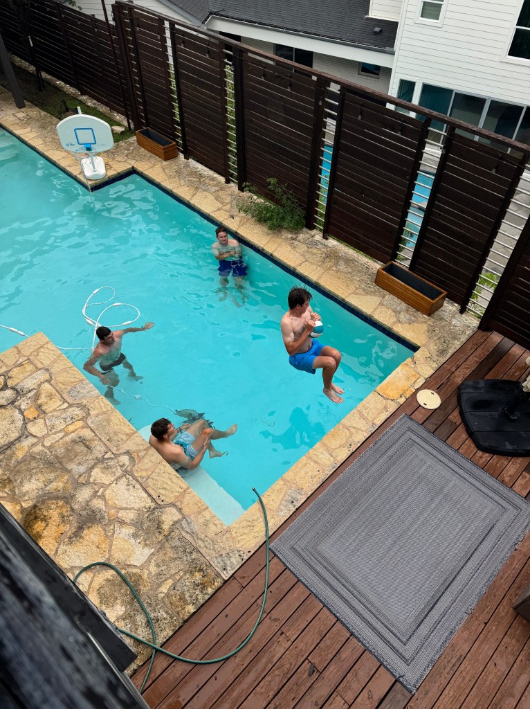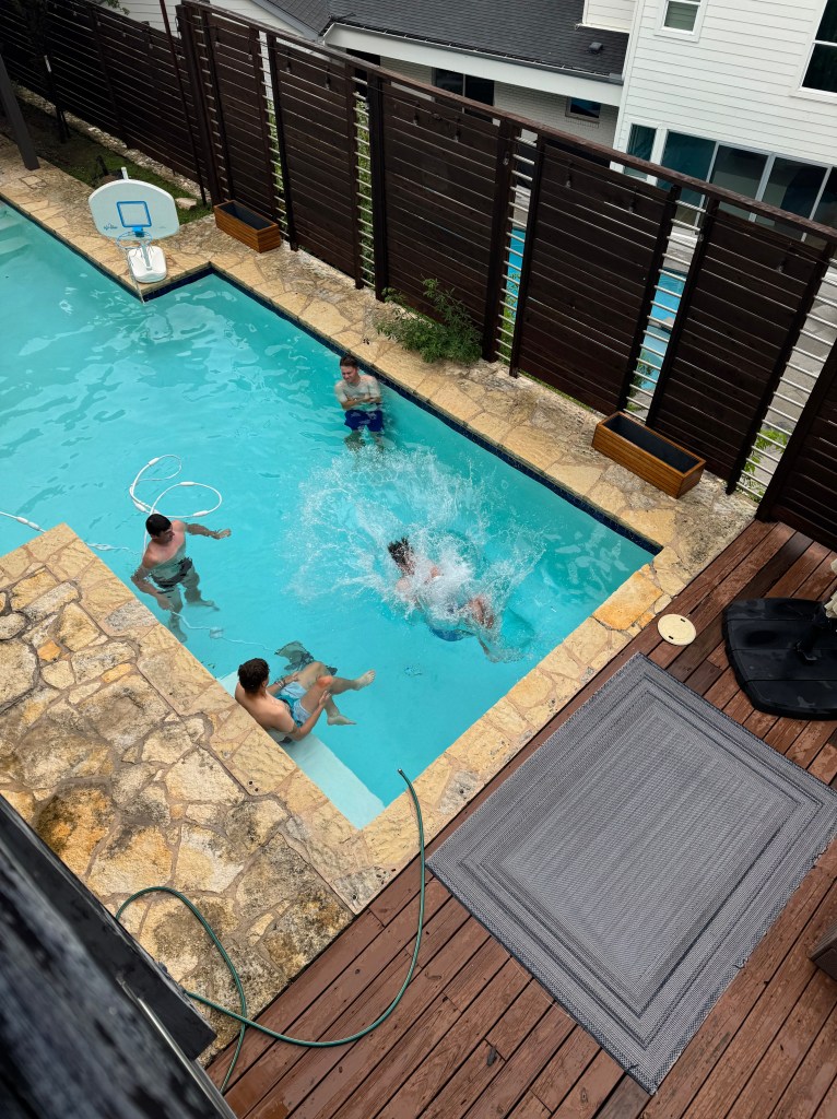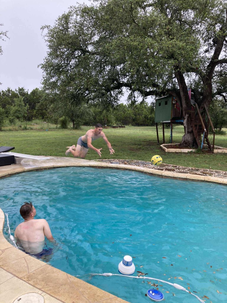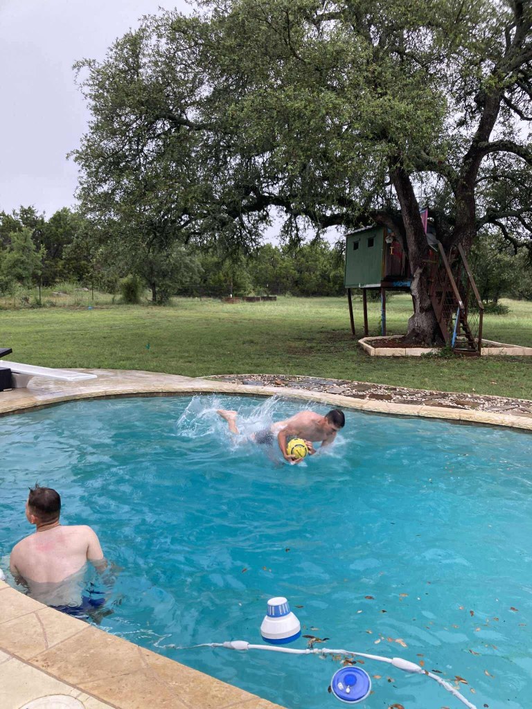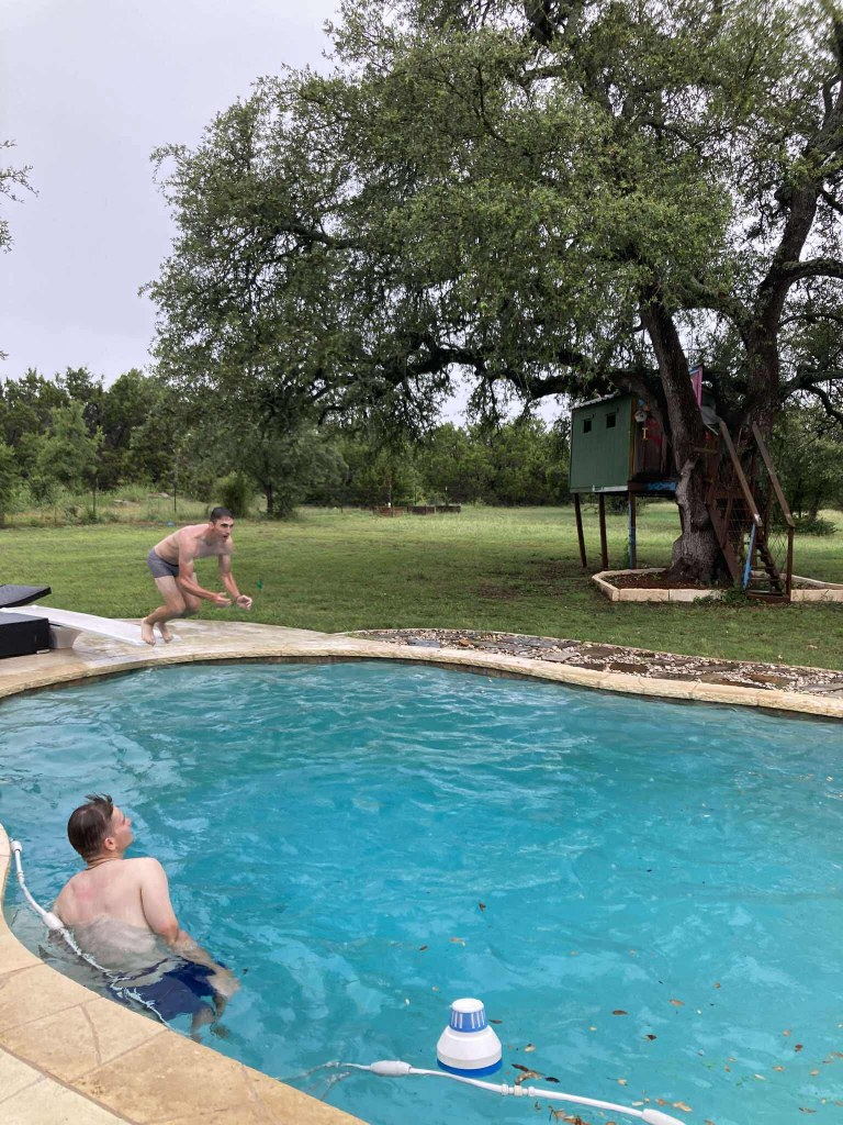 Šonedēļ apciemojām Maiku, kurš grāmatas pārdeva pirms 37 gadiem, bet ar to viss nebeidzas – ar to jau pāris gadus nodarbojas arī viņa bērni. Maiks mums pastāstīja, ka viss, ko iegūstam vasaras gaitā, noder ne tikai tāpēc, lai prastu lieliski pārdot grāmatas – šīs prasmes tiek liktas lietā jebkurā dzīves sfērā, un laikam arī ir tīri noderīgas, būvejot miljonus vērtu biznesu. Šoreiz gan nepeldējāmies parastā baseinā, bet pabaudījām džakuzi.