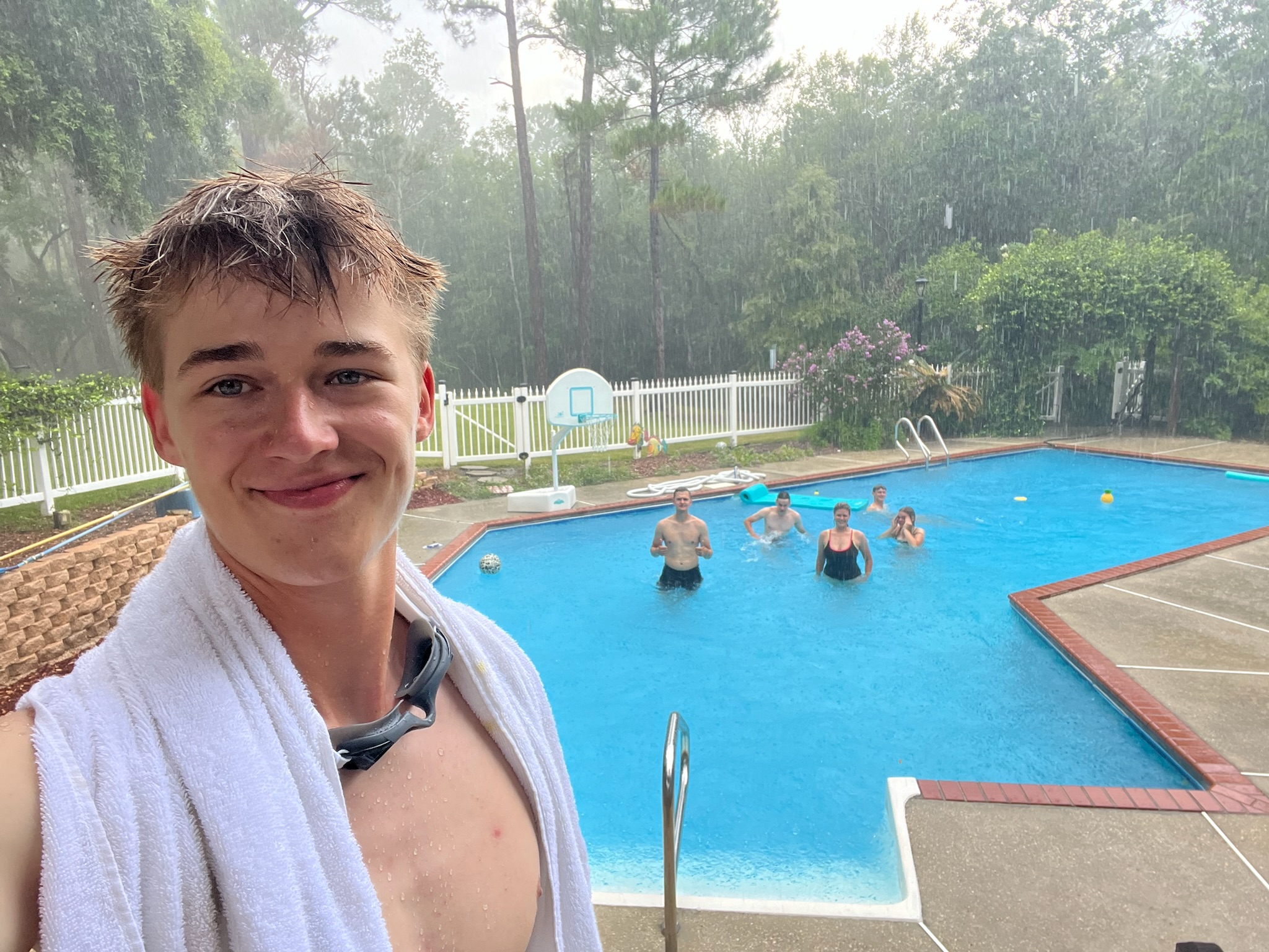 Tiklīdz atbraucām, lietus sāka gāzt kā pa Jāņiem, bet tas mūs neapturēja lekt baseinā un kārtīgi nopeldēties! Jo kas ir sliktākais, kas var notikt? Izmirksim?😄 Ūdens bija silts, garastāvoklis vēl siltāks.