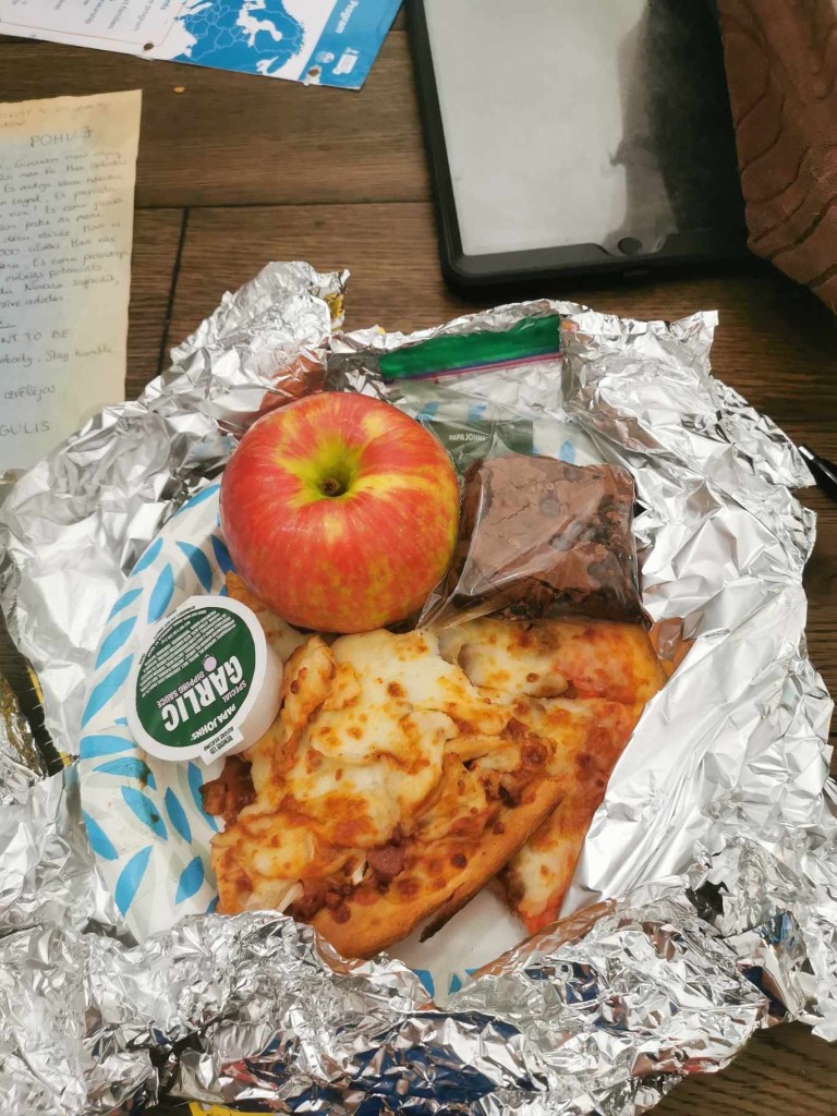 Madara šonedēļ bija ļoti pateicīga cilvēkiem, kurus satika dienas laikā un varēja ar tiem parunāties un uzzināt interesantus stāstus. Tas tiešām motivē un dod prieciņu. Viņa atceras, ka vienu vakaru sanāca nonākt pie ģimenes, kas tieši beidza vakariņot un viņiem bija palicis Texas bbq, kuru arī Madarai iedeva notestēt! Tas tiešām bija super garšīgs, kā visi slavē 🤩 Viņa atceras, ka kādas citas dienas laikā izdevās satikt mammu Taņu, kas kādreiz dzīvoja Pēterburgā, un viņa gatavojās dārza ballītei ar draudzenēm, kur bija pagatavojusi makaronus ar gaļu un dažādus kāpostu sacepumus, un tādus ēdienus, kas bija super garšīgi! Tā ka… ja vēders ir pilns, Madara ir laimīga! 😄